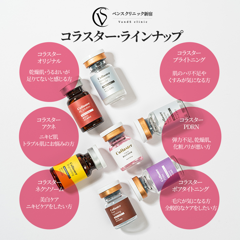 コラスターは、ポテンツァ専用の皮膚再生コラーゲンブースターです。 コラーゲン生成を促進し、肌に十分な水分感を供給して お肌にツヤを与え、お肌の弾力、小じわ、キメの改善にも効果が期待できます。