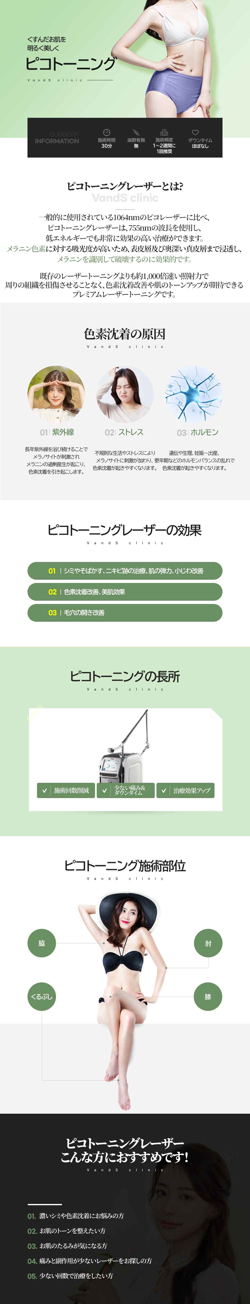 A.ピコトーニングは既存のレーザートーニング装備の照射速度であるナノセカンドより、1000倍速い速度でレーザーが照射される装備です。 迅速な調査速度で周辺組織の損傷や痛みを最小限に抑えるメリットがあります。