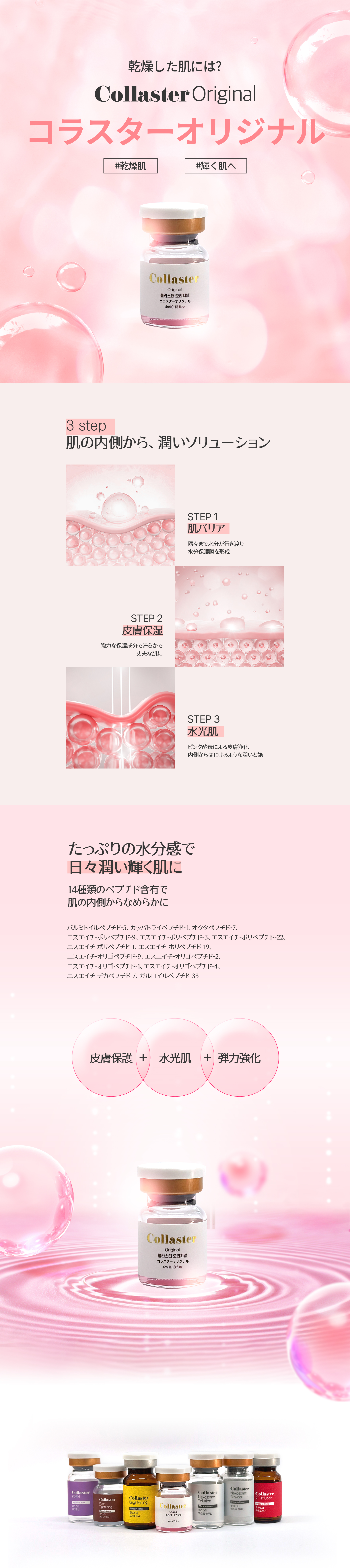 コラスターは、ポテンツァ専用の皮膚再生コラーゲンブースターです。 コラーゲン生成を促進し、肌に十分な水分感を供給して お肌にツヤを与え、お肌の弾力、小じわ、キメの改善にも効果が期待できます。